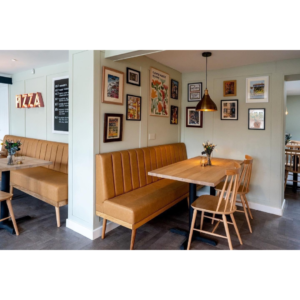 Home » Vertical Fluted Back Banquette Seating » Vertical Fluted Back Bench Seating with Legs