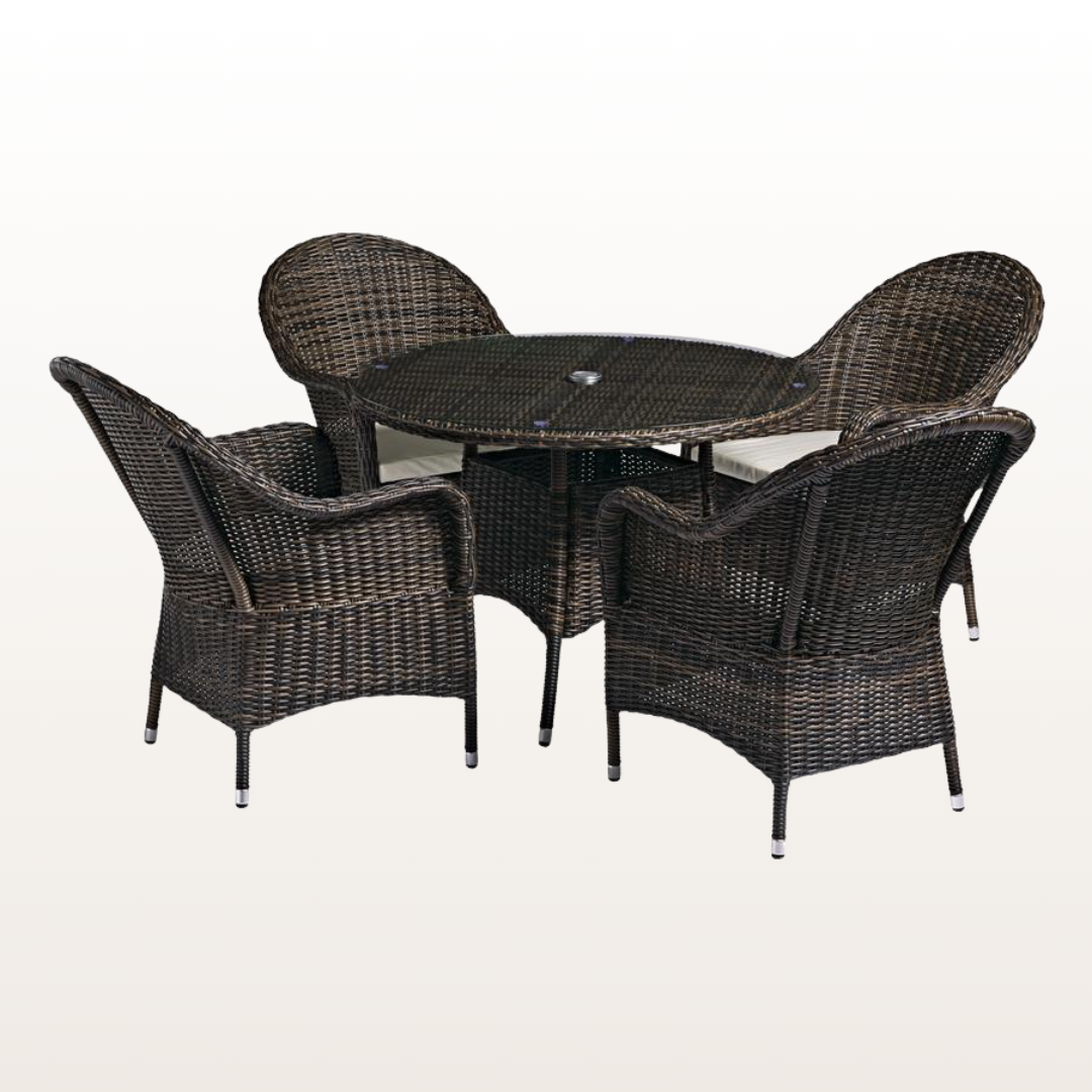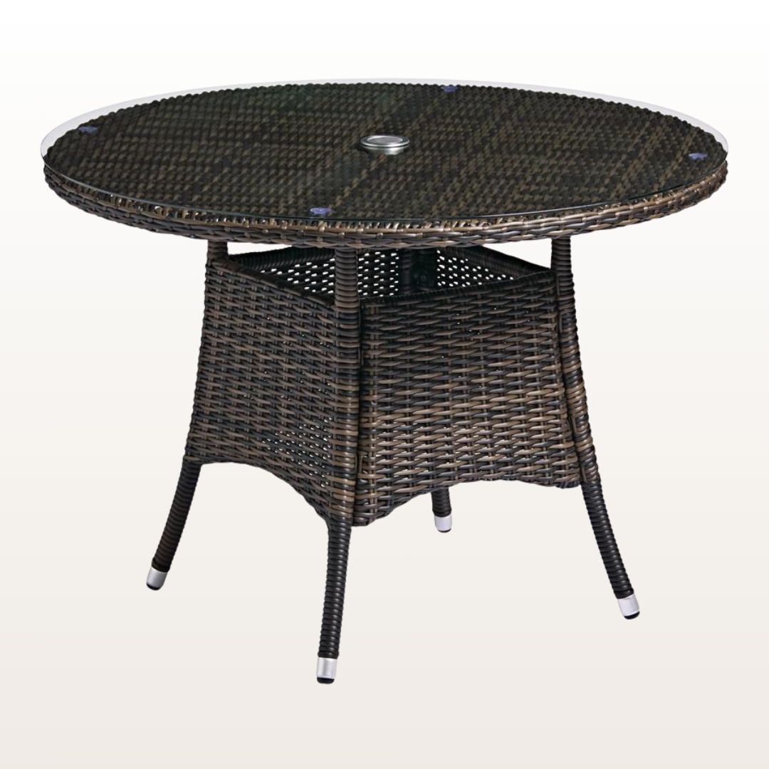 KORO DINING TABLE – BROWN WEAVE – GLASS TOP – 110CM DIA