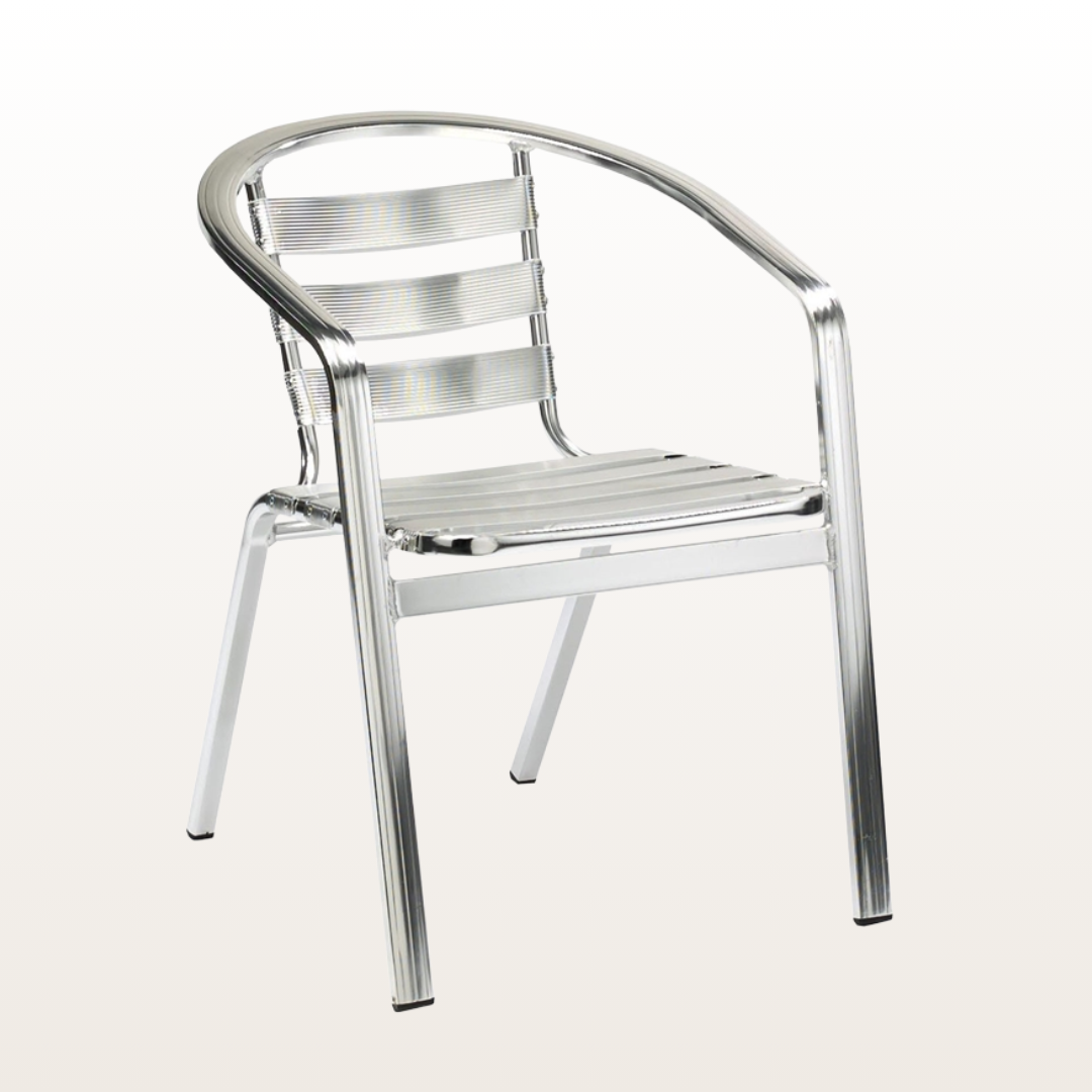 The Monaco Aluminium Stacking Chair, also known as the Bolero Chair, is a versatile and durable outdoor seating solution ideal for cafés, pubs, restaurants and other commercial environments. Shown here in its clean, contemporary aluminium finish, it offers a practical and stylish option for outdoor use.