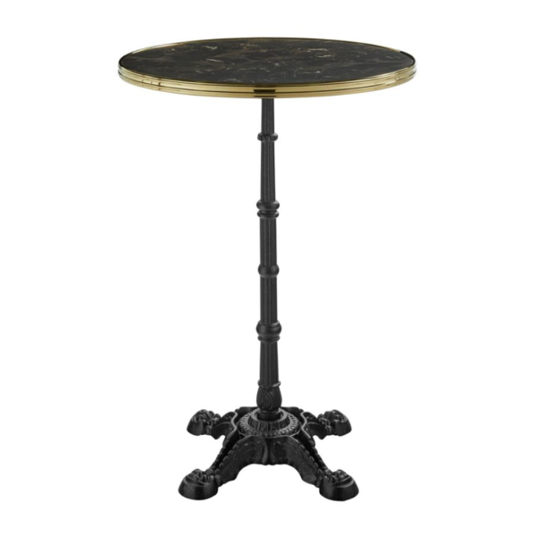 Inspired by classic French bistros, the Parisian Complete Bar Height Table combines timeless elegance with exceptional durability. Its striking Dark Marble with Gold Rim tabletop, framed by a stylish contoured metal ring, is suitable for both indoor and outdoor use. Crafted from high-quality, weather- and mould-resistant materials, it provides superior protection against heat, scratches, and stains.