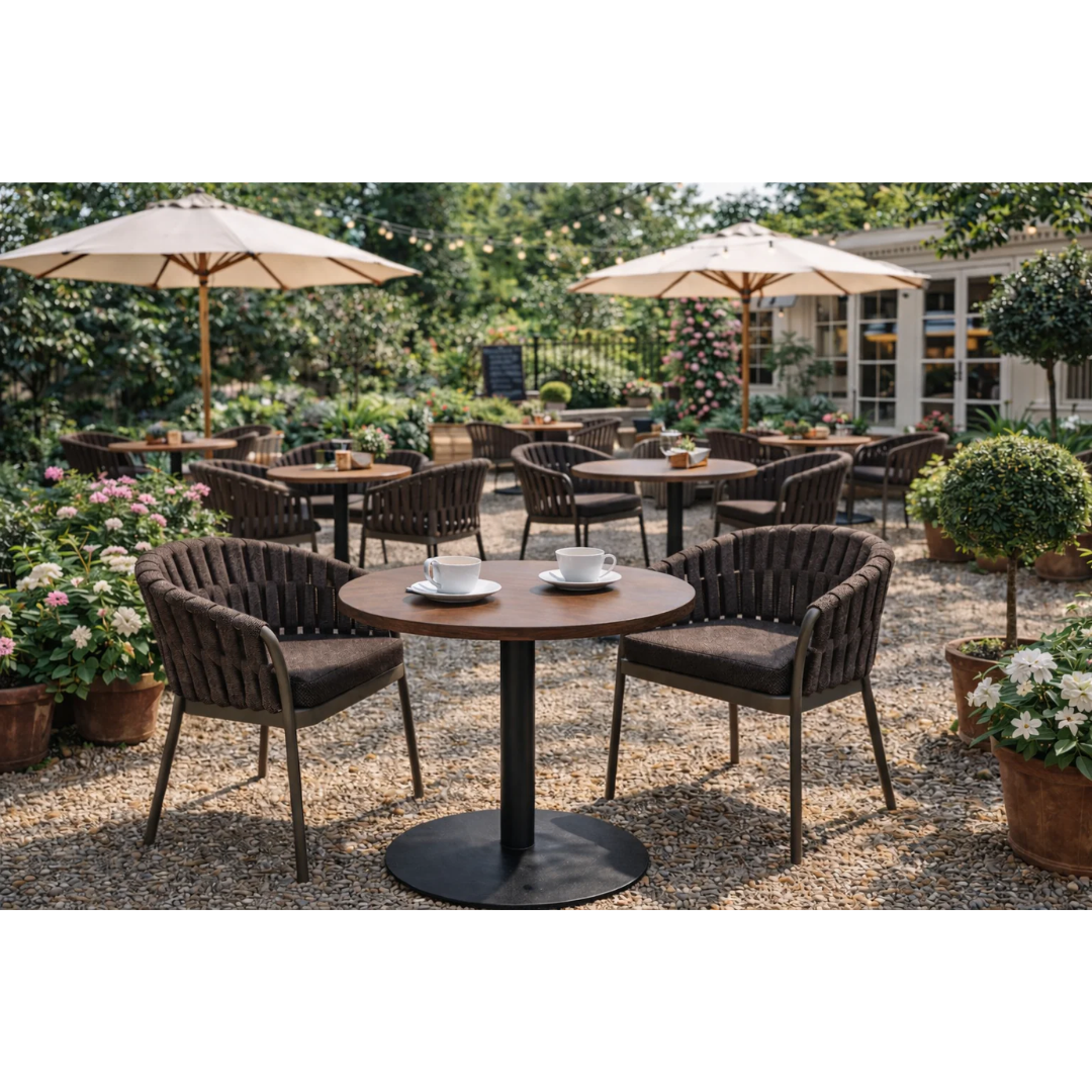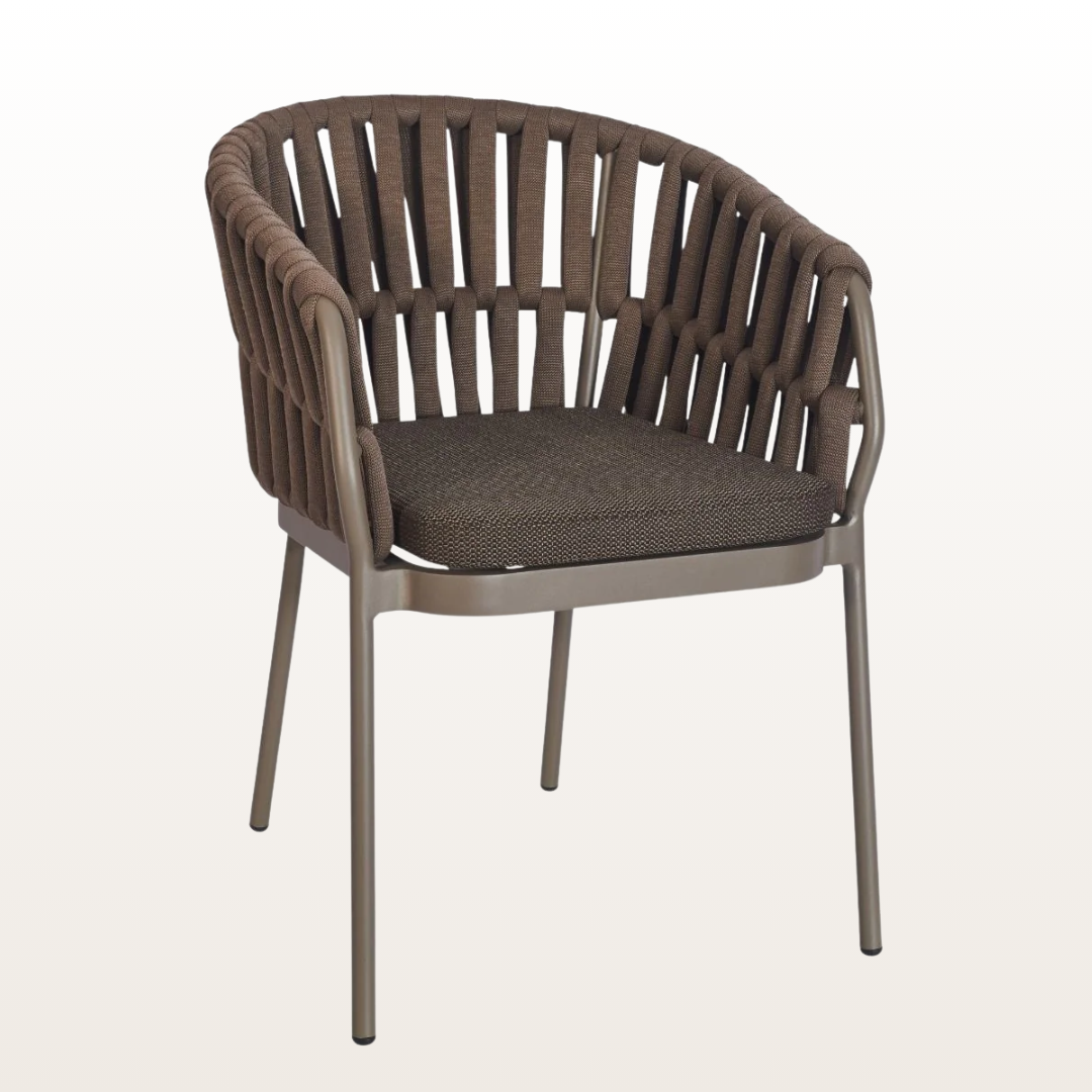The St Tropez Armchair is a luxury outdoor tub-style chair designed for both comfort and style. Featuring a soft woven back and a supportive cushion, it provides a relaxed seating experience ideal for hospitality terraces, patios and garden dining areas.